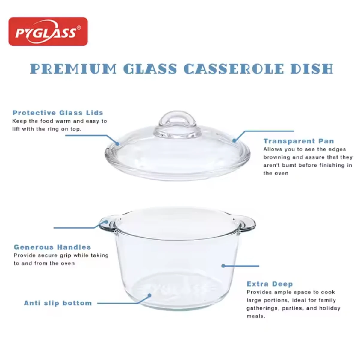 Cocotte en verre borosilicate avec couvercle – Compatible induction & Résistante à la chaleur