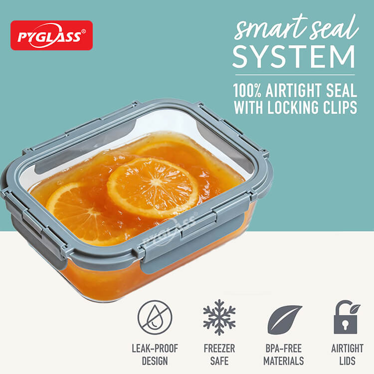 Crystal Clear Visibility & Airtight Freshness The transparent glass lids allow for easy content identification from any angle. Combined with food-grade silicone seals, this glass food containers set ensures a 100% leak-proof and airtight vacuum, extending food shelf life and reducing waste.