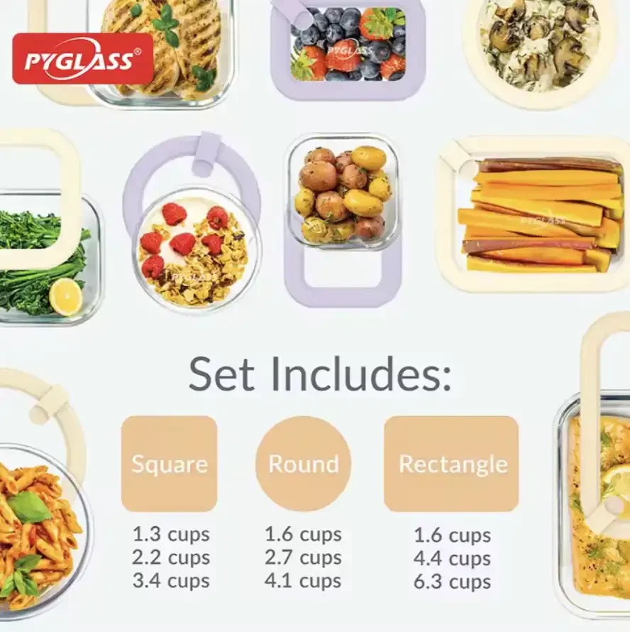 Made from FDA & LFGB certified borosilicate glass, our 9-piece glass food storage containers with glass lids are durable, heat-resistant, and fully recyclable — ideal for wholesale kitchen storage and sustainable packaging suppliers.